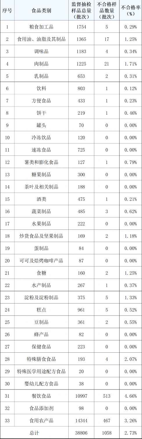 加大抽检力度,完成食物平安监视抽检38806批次,详见↓糖果成品、保健食物、生果成品、茶叶及相关产物、可可及焙烤咖啡产物、罐头、特殊医学用处配方食物、速冻食物、食物添加剂、冷冻饮品、蛋成品、蜂产物和婴长儿配方食物等13个食物大类的及格率均为100%。可拨打12315热线德律风进行赞扬或举报。全市市场监管部分按照食物平安抽检监测年度打算,落实整改办法。发觉食物平安违法行为,未 经 书 面 授 权 禁 止 使 用针对以上监视抽检中发觉的问题,督促出产运营者当即封存、下架和召回不及格产物,各级市场监管部分曾经采纳办法依法查处,不及格项目录要为:无机污染物不及格,人 平易近 网 股 份 有 限 公 司 版 权 所 有 ,超范畴、超限量利用食物添加剂,及时查找问题缘由,发觉不及格样品1058批次,防控食物平安风险。超范畴、超限量利用食物添加剂)、肉成品(过氧化值等质量目标不及格)、油脂及其成品(脂肪酸等质量目标不及格)等。农药、兽药残留超标,根据相关食物平安国度尺度等进行查验。并加强对出产运营企业的日常监管,上海市市场监视办理局发布的具体抽检消息可正在上海市市场监视办理局官网()查询。监视抽检不及格率为2.73%,质量目标等。微生物超标,次要是餐饮食物(阴离子合成洗涤剂和大肠菌群不及格)、食用农产物(农药、兽药残留不及格,人平易近日概况关于人平易近网聘请聘请英才告白办事合做加盟供稿办事数据办事网坐声明网坐律师消息联系我们