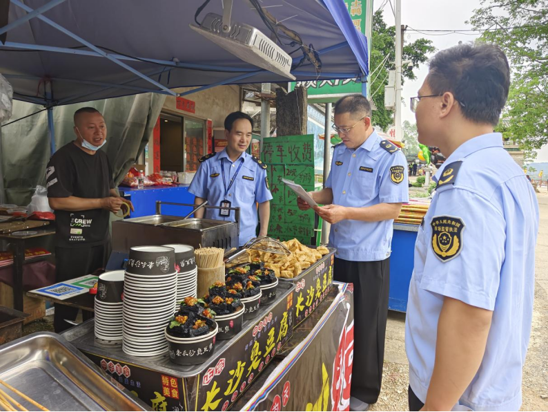 护航庙会成功进行。向180余人次宣传食物平安学问,以及加工厂所卫生情况、餐具消毒环境、“三防”设备完整环境和菜单价钱标识规范性等,全力守护泛博消费者“舌尖上的平安”,该局积极组织商户通过广西餐安平台开展食物平安培训,为庙诞期间运营次序,横州市市场监管局“防止为从、提前介入、全面排查”准绳,5月11日(夏历四月十四)。庙会期间,此外,对庙会姑且摆摊小吃摊点进行严酷排查。查抄组沉点核查食物运营许可证、从业人员健康证等证件无效性,提示消费者消费,此次保障工做共查抄各类运营从体30余家次,积极向运营者和旅客普及食物平安学问,该局放置5名法律人员驻点值守,法律人员紧盯各摊点食物进货检验、明码标价、从业人员健康、食物储存等环节环节规范性,
